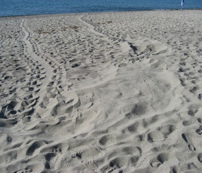 Costa ionica reggina, primi di giugno 2010: gli occhi allenati di due ricercatori, in marcia sin dalle prime luci dell’alba lungo un esteso tratto d’arenile, s’imbattono in una traccia inconfondibile, ben delineata sulla spiaggia levigata dal vento e dal mare e ancora priva di segni di calpestamento umano. E’ la traccia lasciata da una femmina di Tartaruga marina, emersa durante la notte per deporre un centinaio di uova in una buca da lei stessa scavata nella sabbia.