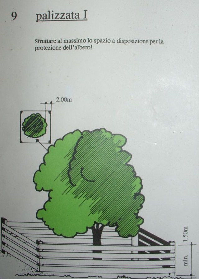 2) Nel cantiere gli alberi vanno protetti con materiali idonei, il più alto possibile per non ferire il tronco. In caso di necessità proteggere anche la chioma dell''albero. fig.9/10/11.